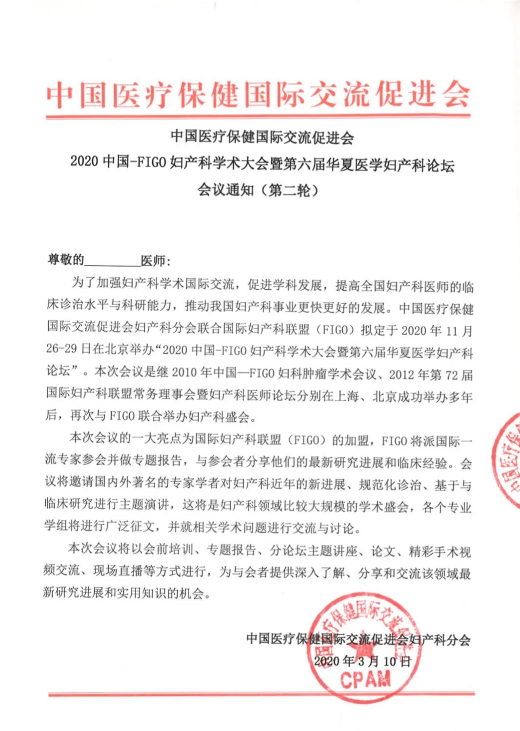會議通知 | 2020年中國-FIGO婦產科學術大會會議通知