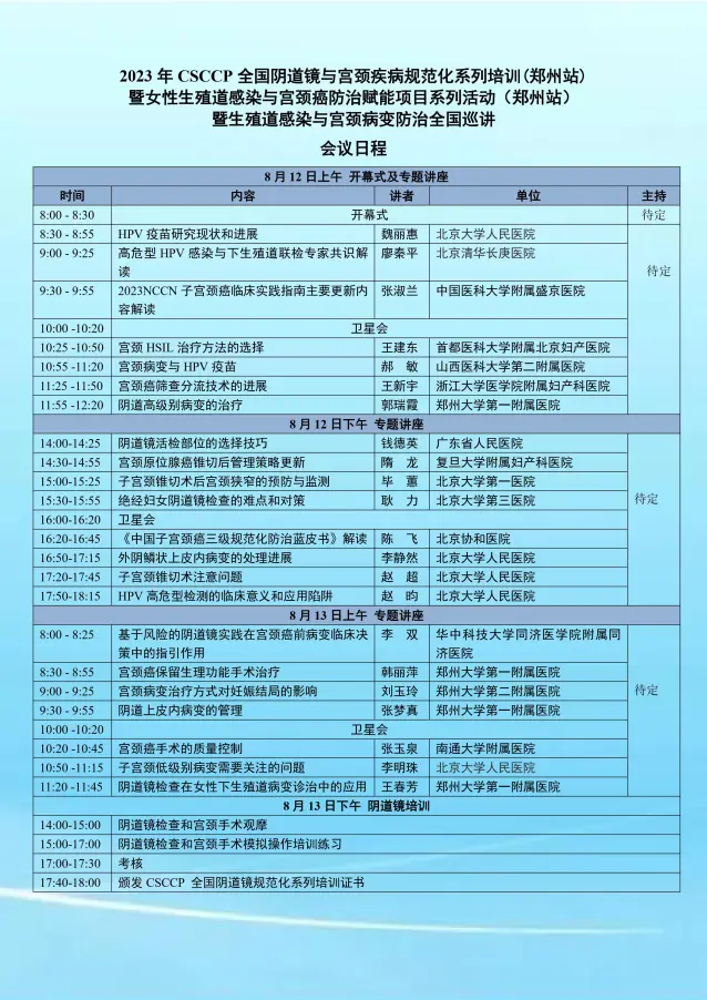 2023年CSCCP全國(guó)陰道鏡與宮頸疾病規(guī)范化系列培訓(xùn)通知(鄭州站)