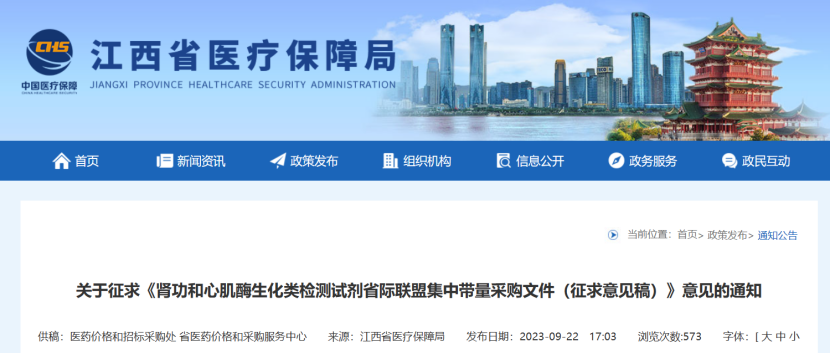 9月22日,江西省醫(yī)保局發(fā)布《關(guān)于征求<腎功和心肌酶生化類(lèi)檢測(cè)試劑省際聯(lián)盟集中帶量采購(gòu)文件(征求意見(jiàn)稿)>意見(jiàn)的通知》。