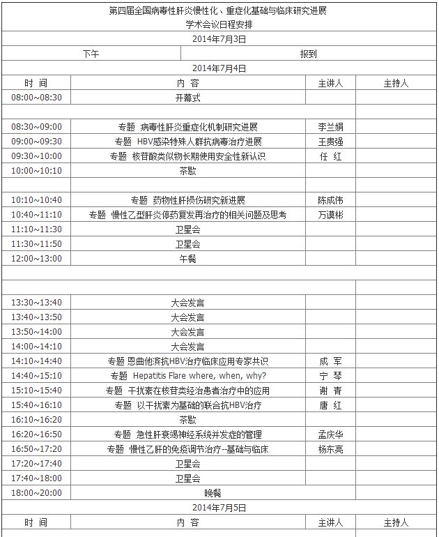 會議將設專題報告、大會發言和書面交流三種形式,特別邀請國內感染病學和肝病學等領域的知名專家,就有關專題進行交流。為了避免專題報告過多重復使用過去衛星會的幻燈及內容,致使有關新進展反映不多,本次大會將嚴格要求講者的講稿及幻燈片避免重復,力求反映最新研究進展及成果。