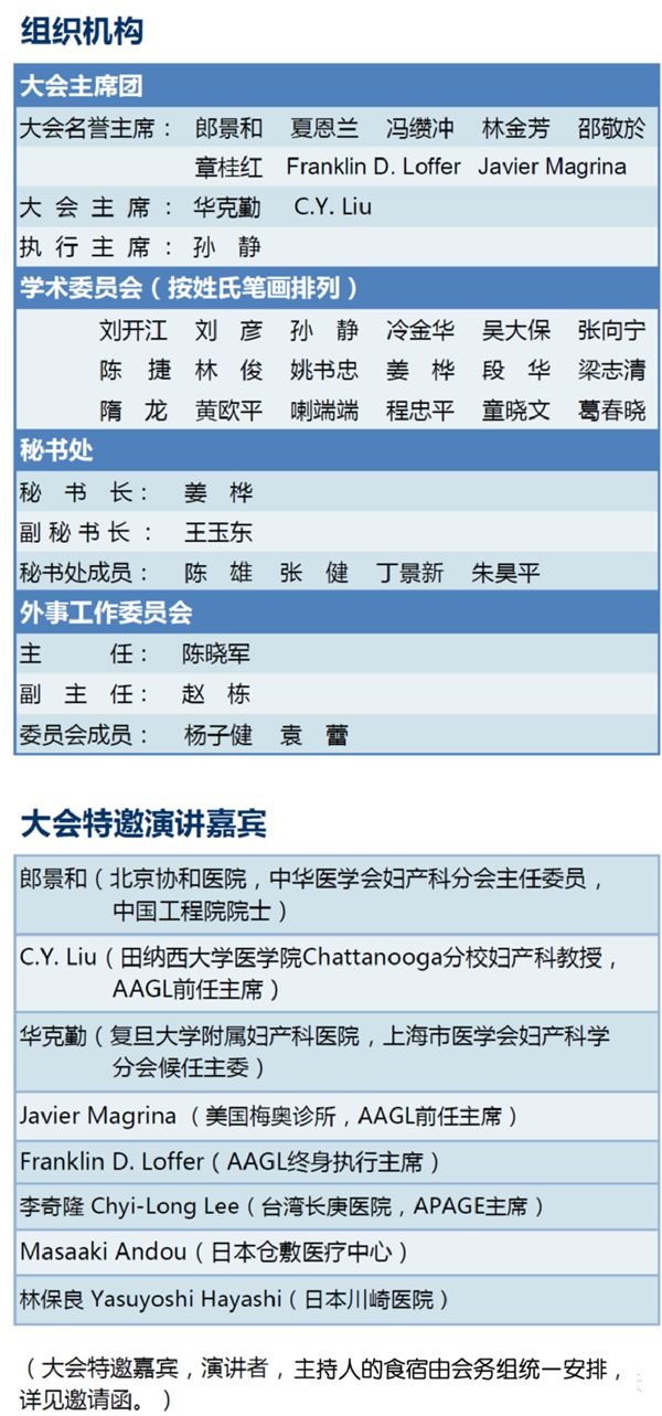 我們謹代表中美婦科內鏡高峰論壇組委會,誠摯地歡迎各位婦產科界同道參加2015年9月25-26日在上海國際會議中心召開的“中美婦科內鏡高峰論壇”(AAGL上海區(qū)域會議)!