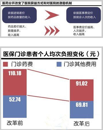 在試點醫院的改革中,患者首先得到了益處。評估報告對此給出了數據結論,即改革后,試點醫院患者次均藥費下降明顯,同比下降幅度達到了26.3%。即使剔除15%的取消藥品加成因素,仍有13%以上的費用降幅。更為重要的是,患者用藥的合理性得到了提高。