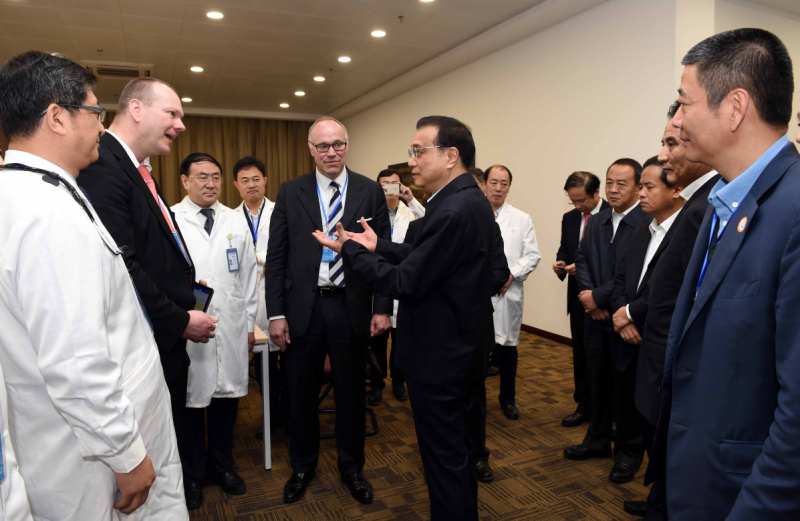 李克強25日考察博鰲樂城國際醫療旅游先行區??吹胶D鲜∧[瘤醫院、天津市腫瘤醫院和德國漢堡大學的幾位專家,通過網絡視頻通話對一位中國肺癌患者進行遠程會診,總理對這一“醫療+互聯網”探索高度稱贊。