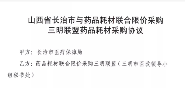 近日,山西省長治市與三明市簽訂藥品耗材聯合限價采購協議,宣布加入三明聯盟,成為聯合限價采購聯盟新成員。