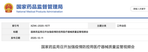 日前,國家藥監(jiān)局召開加強疫情防控用醫(yī)療器械質(zhì)量監(jiān)管視頻會,全面貫徹落實國務(wù)院關(guān)于做好常態(tài)化疫情防控有關(guān)工作部署和要求,對進一步加強新冠病毒檢測試劑、醫(yī)用防護服、醫(yī)用口罩、紅外體溫計、呼吸機等醫(yī)療器械質(zhì)量監(jiān)管工作再部署、再強調(diào)、再落實。