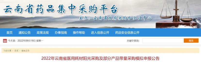 近日,云南省醫(yī)藥集中采購平臺發(fā)布《2022年云南省醫(yī)用耗材陽光采購及部分產品帶量采購模擬申報公告》,擬開展2022年云南省醫(yī)用耗材陽光采購及部分產品帶量采購的申報工作,并組織模擬申報。