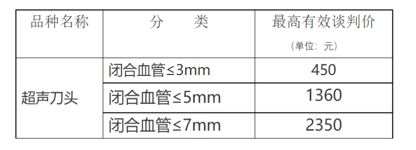 江蘇省閉合血管 5mm、3mm超聲刀頭最高有效申報價分別為設置為 2700元和1700 元,最終超聲刀頭平均降幅49%。