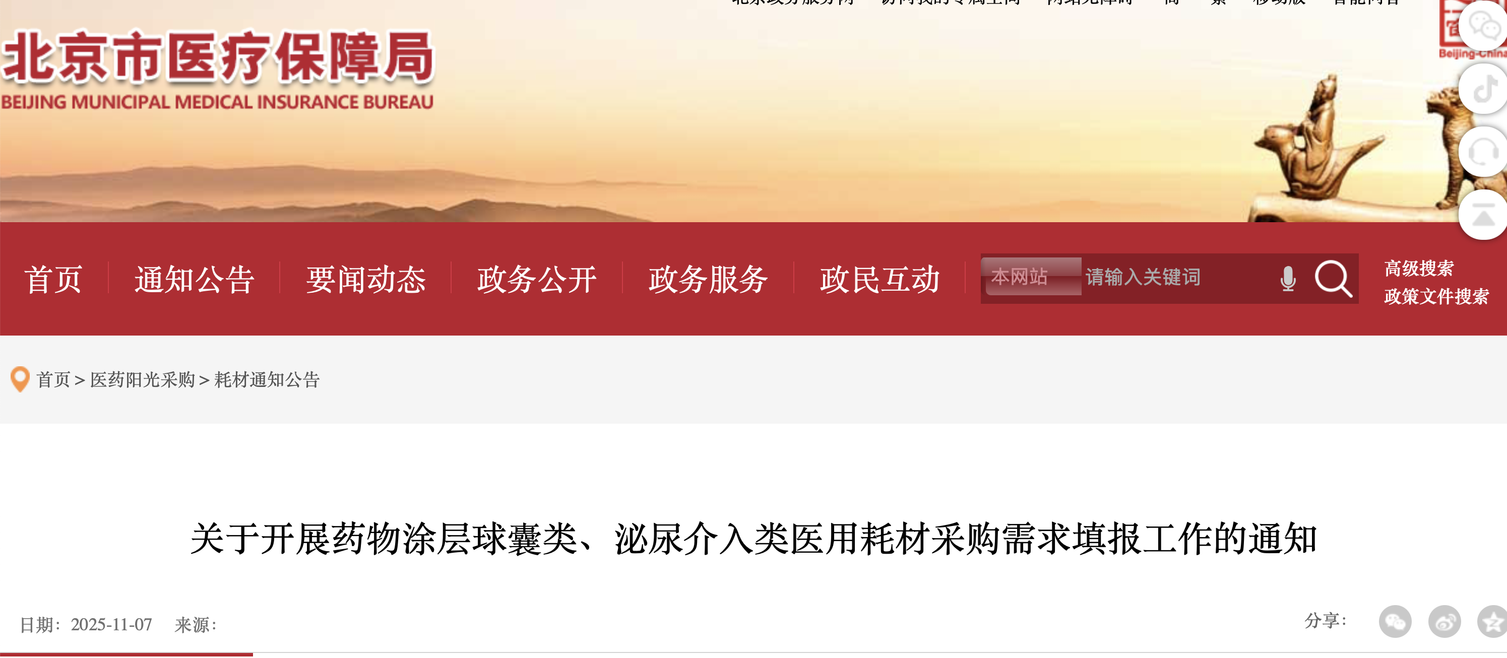 今日(11月7日),北京市醫保局發布《關于開展藥物涂層球囊類、泌尿介入類醫用耗材采購需求填報工作的通知》,第六批國采正式進入采購需求量填報階段。