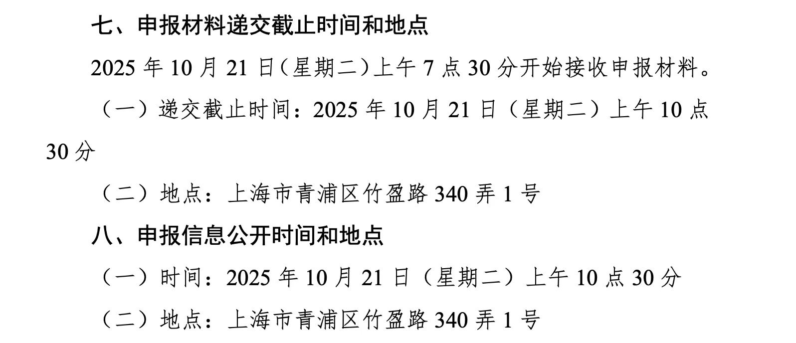 第十一批國采自10月21日(星期二)上午7點30分開始接收申報材料,遞交截止時間為當日上午10點30分,地點為上海市青浦區竹盈路340弄1號;申報時間和地點同上。