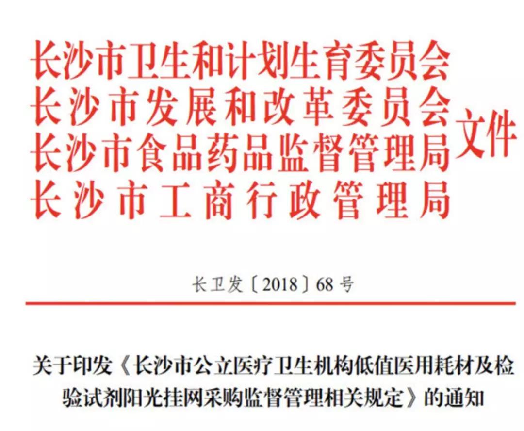 湖南省郴州市發布文件開展低值耗材試劑掛網采購后,長沙市也開始行動了。