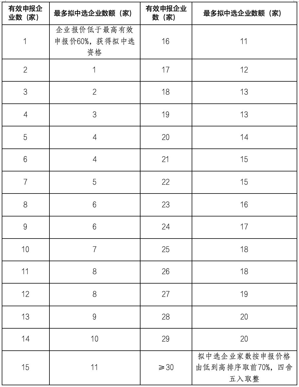 各競價(jià)組按市場占有率分為A、B兩個(gè)競價(jià)單元,同一競價(jià)單元內(nèi),依據(jù)申報(bào)企業(yè)報(bào)價(jià)由低到高進(jìn)行排名,擬中選企業(yè)取數(shù)表如下:
