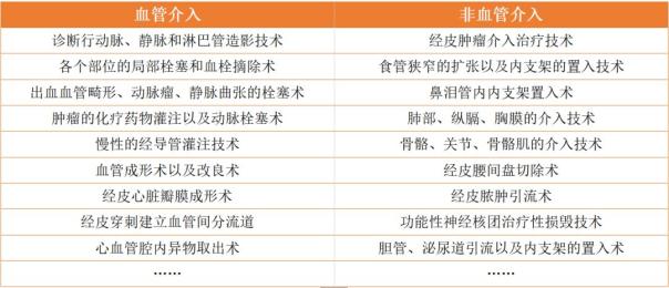 介入治療又可分為血管性介入術和非血管介入術,其主要種類如下表所示: