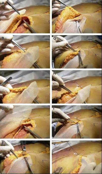 圖 2 A~I 示倒刺縫線應用于假體隆乳術
