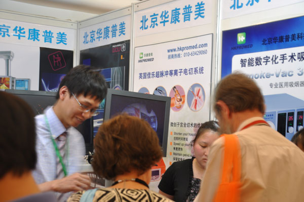 北京華康普美科技有限公司參加本次展會(huì).展位號(hào)C8。公司展出的婦科leep刀、宮腔鏡、智能數(shù)字化手術(shù)吸煙器、超脈沖等離子電切系統(tǒng)等產(chǎn)品在婦科LEEP手術(shù),整形外科、皮膚科、耳鼻喉科、眼科、口腔科等微創(chuàng)組織切割手術(shù)等手術(shù)中廣泛應(yīng)用,前來(lái)咨詢的中外醫(yī)院專(zhuān)家絡(luò)繹不絕,展出產(chǎn)品倍受中外醫(yī)院專(zhuān)家關(guān)注和信任。