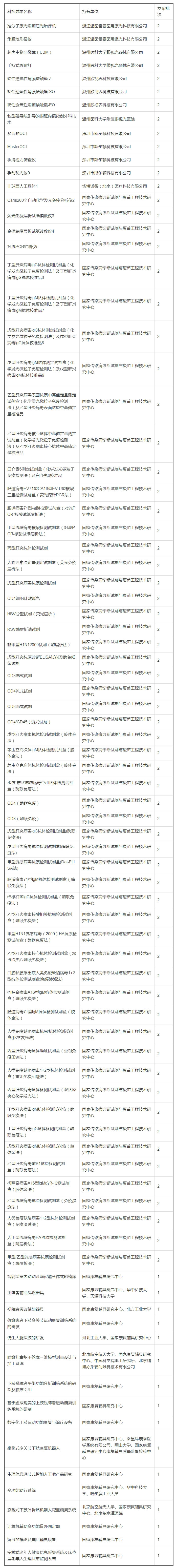 其中,人口健康領域的科技成果有89項,大部分又是醫療器械或按照醫療器械管理的體外診斷試劑(69項)。加上3月3日發布的第一批內容,科技部今年已經發布了113項人口健康領域的科技成果轉化推廣信息,醫療器械占到85項。