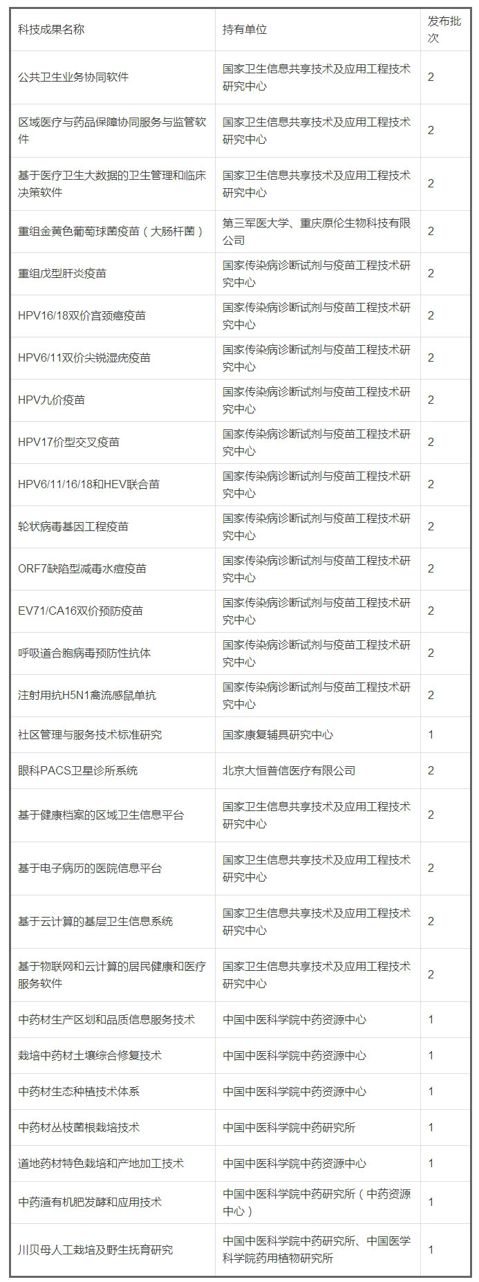 項人口健康領域科技成果名單如下: