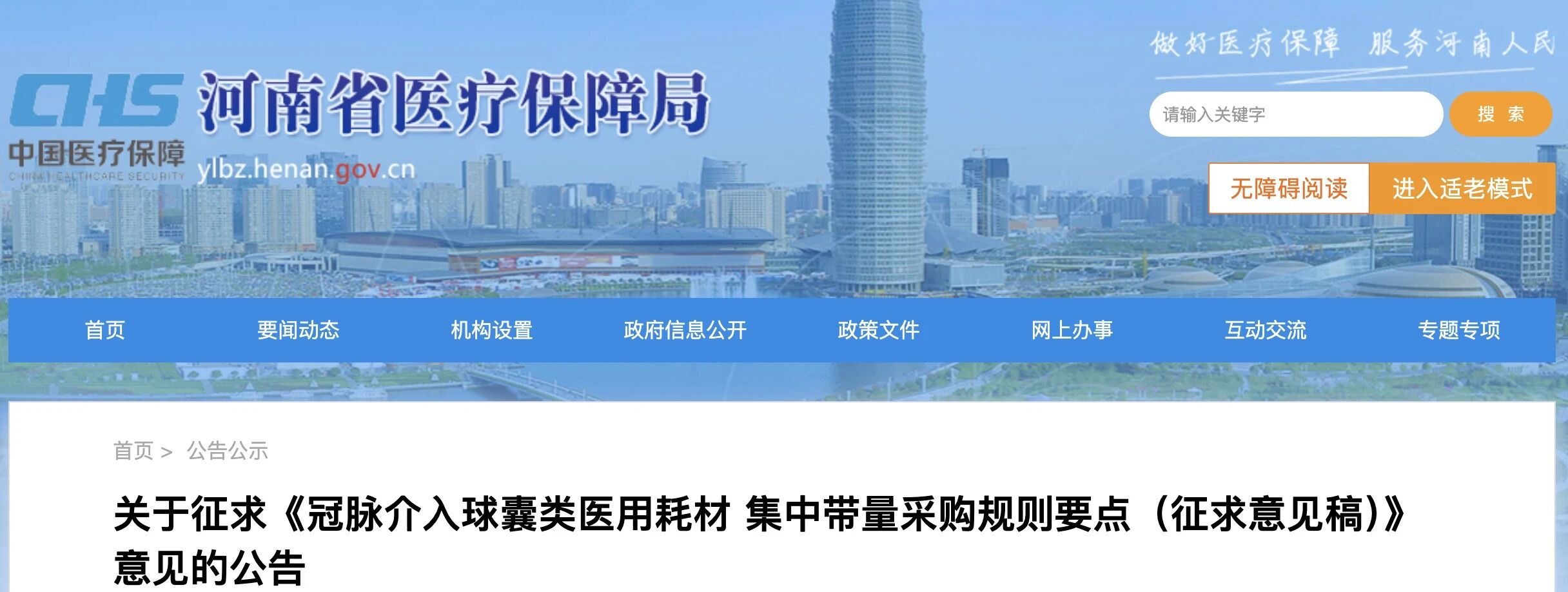 9月11日,河南醫(yī)保局發(fā)布《冠脈介入球囊類醫(yī)用耗材 集中帶量采購規(guī)則要點(征求意見稿)》(完整見文末),意見征求截止時間為9月15日18時。