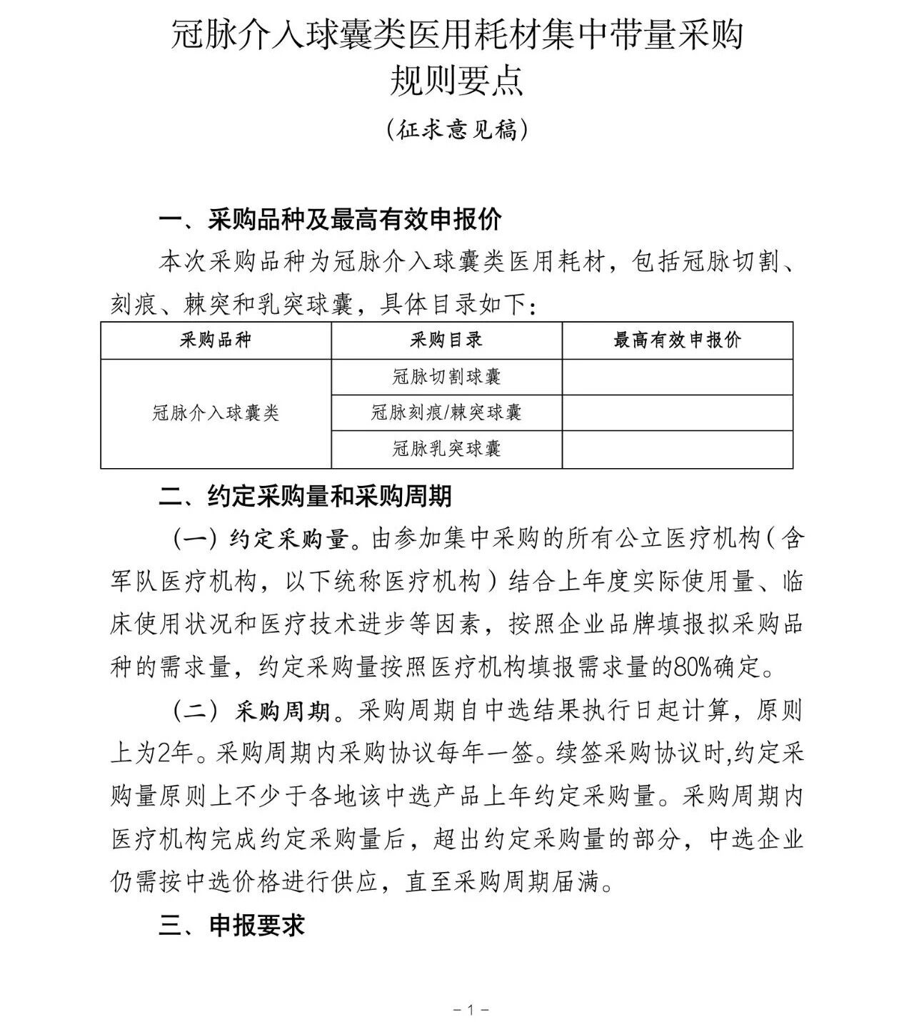 根據(jù)《意見稿》,此次采購品種為冠脈介入球囊類耗材,包括冠脈切割、刻痕、棘突和乳突球囊,最高有效申報價暫未公布。