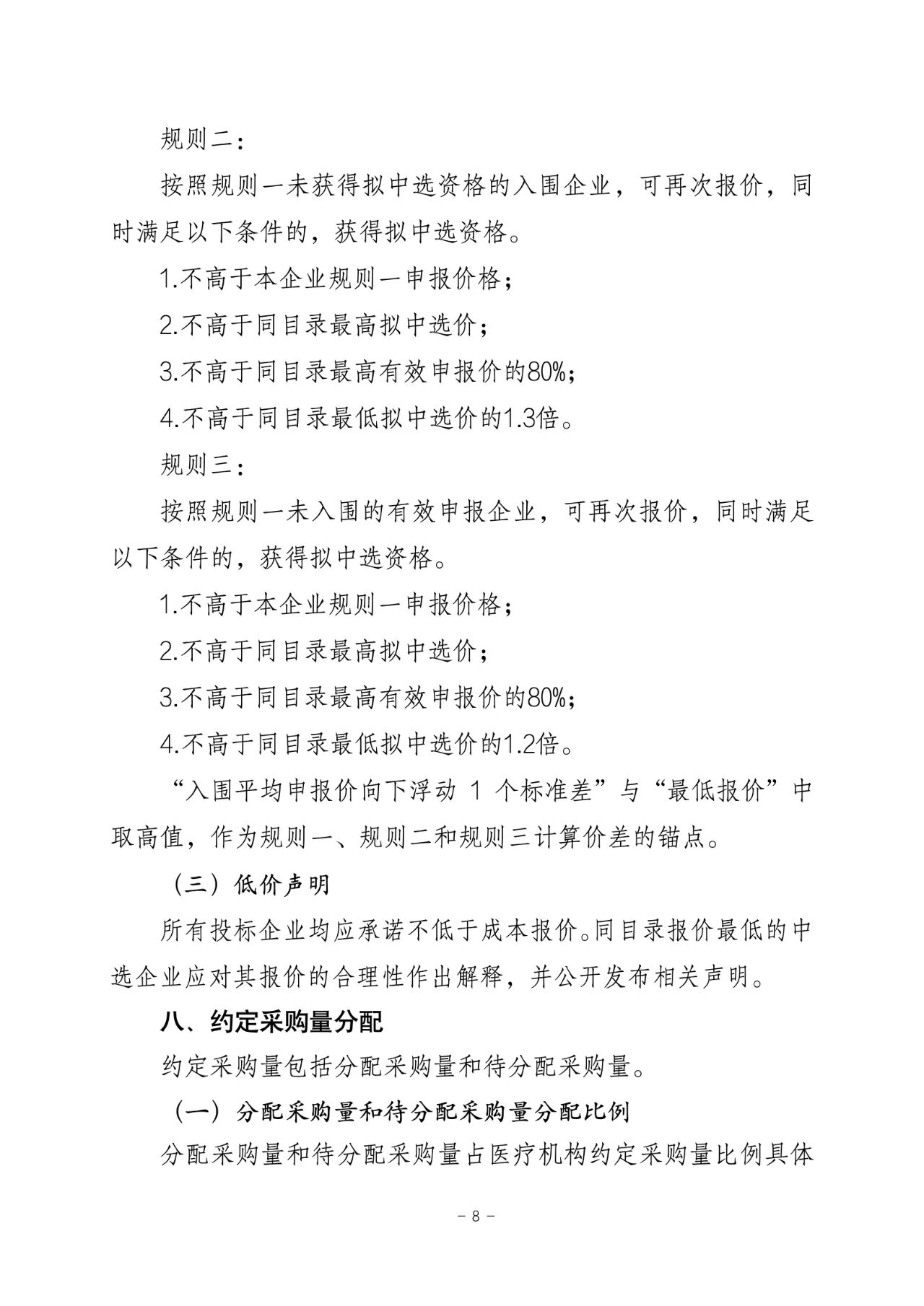 按照規(guī)則一未入圍的有效申報企業(yè),可再次報價,同時滿足不高于本企業(yè)規(guī)則一申報價格、同目錄最高擬中選價、同目錄最高有效申報價的80%,同目錄最低擬中選價的1.2倍這四個條件的,獲得擬中選資格。