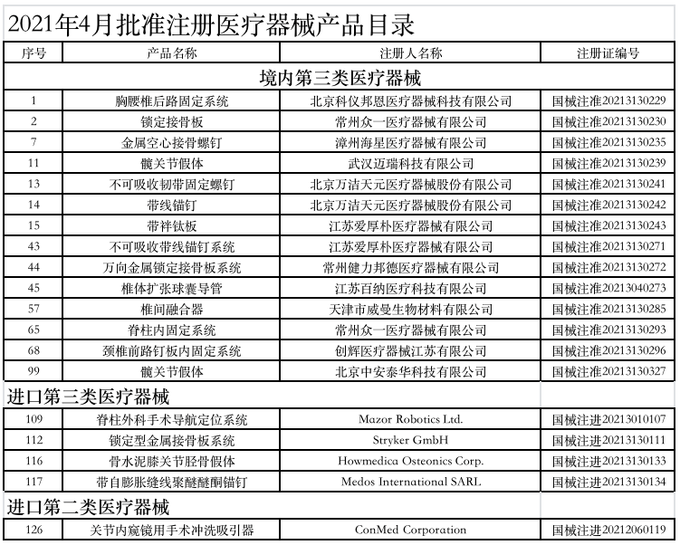 附:2021年1-6月獲批的骨科醫(yī)療器械產(chǎn)品