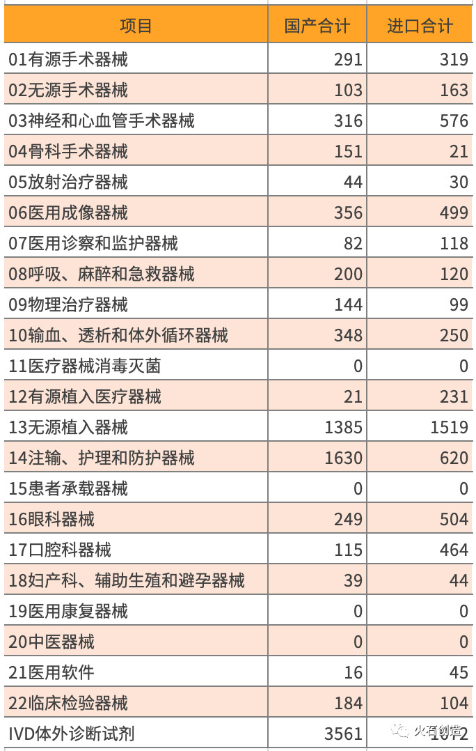 根據火石創造數據庫顯示,近五年進口和國產器械獲批數量比較,進口器械獲批數量開始出現逐年降低且幅度較大,而國產器械的獲批數量穩中有升,說明國產替代開始加速;另外,根據分類來看,國產二類遠遠大于進口二類獲批數量,說明在中低端器械,國產基本實現替代,而國產三類與進口三類差距不大,但國產三類開始出現增長趨勢,說明高端器械市場,國產替代在發力加速。見表1。