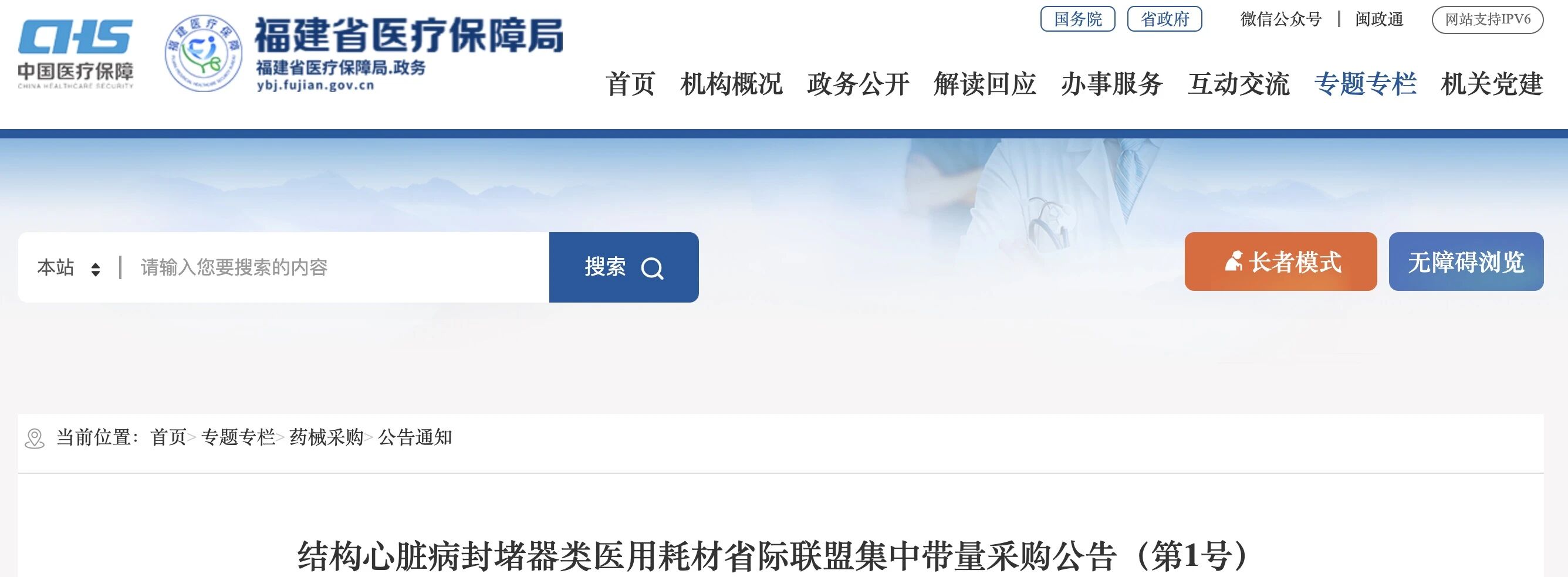 11月12日,福建醫(yī)保局發(fā)布《結(jié)構(gòu)心臟病封堵器類(lèi)醫(yī)用耗材省際聯(lián)盟集中帶量采購(gòu)文件》。