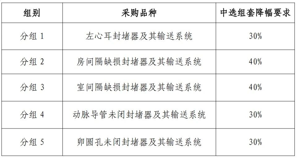 根據(jù)采購(gòu)文件,本次采購(gòu)品種為結(jié)構(gòu)心臟病封堵器及其輸送系統(tǒng)類(lèi)耗材,包含但不限于耗材分類(lèi)與代碼前7位為 C020301、C020302 開(kāi)頭的產(chǎn)品,不包含可降解封堵器及其輸送系統(tǒng)。