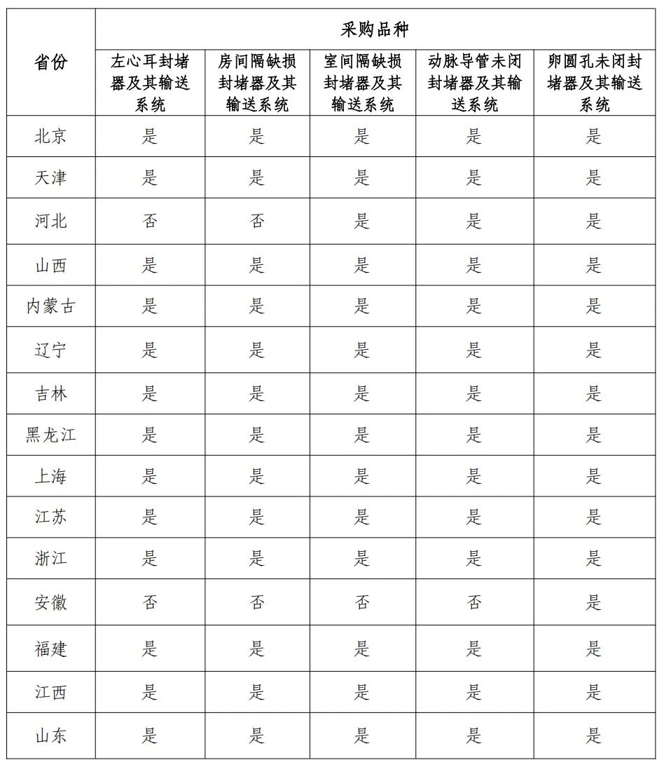 結(jié)構(gòu)心臟病封堵器聯(lián)盟省份參與情況: