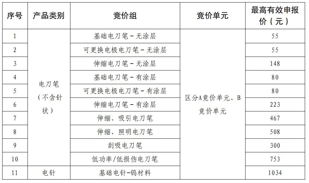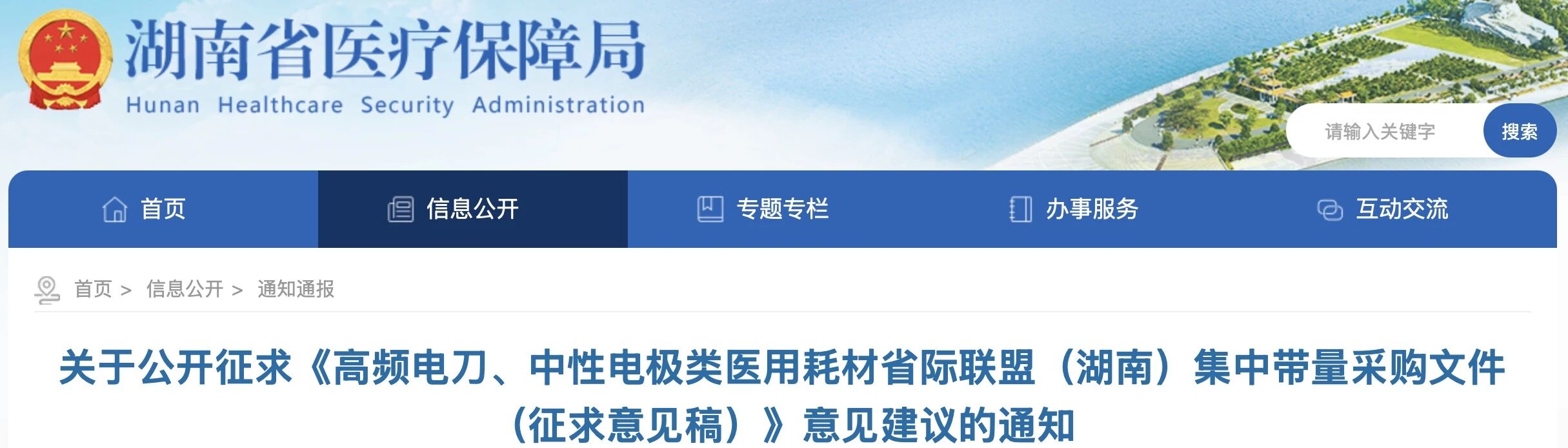 11月11日,湖南醫(yī)保局發(fā)布《高頻電刀、中性電極類(lèi)醫(yī)用耗材省際聯(lián)盟(湖南)集中帶量采購(gòu)文件(征求意見(jiàn)稿)》。
