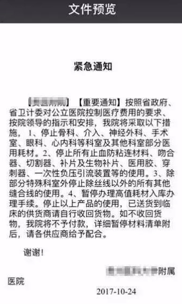對(duì)于耗材的停用,似乎比藥品停用的影響來得更大。