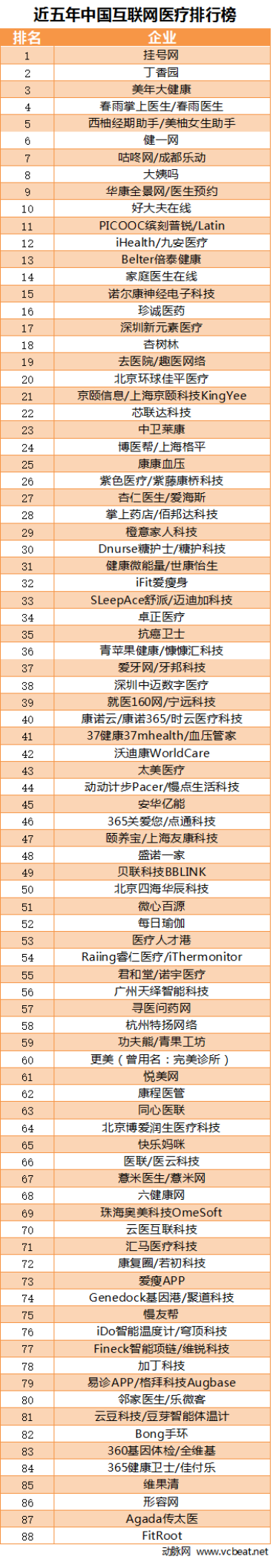 中國互聯網醫療近五年企業融資排行榜