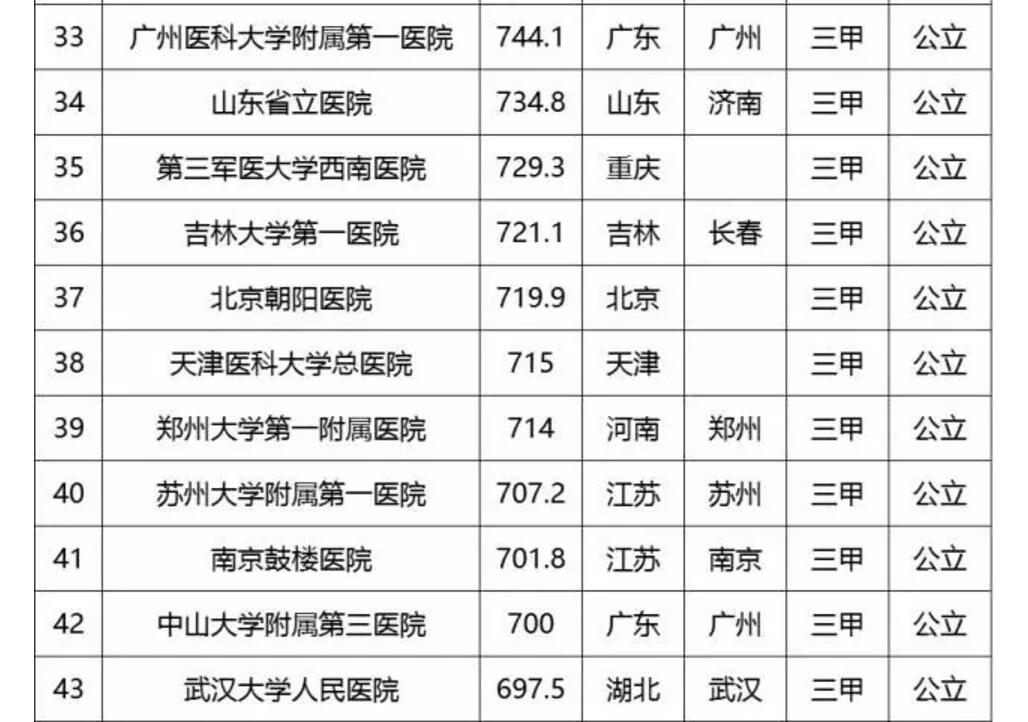 中國頂級醫院百強榜出爐:協和第2 華西第3
