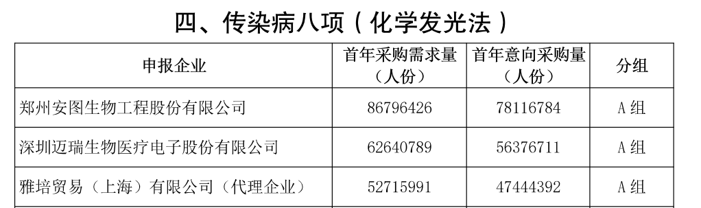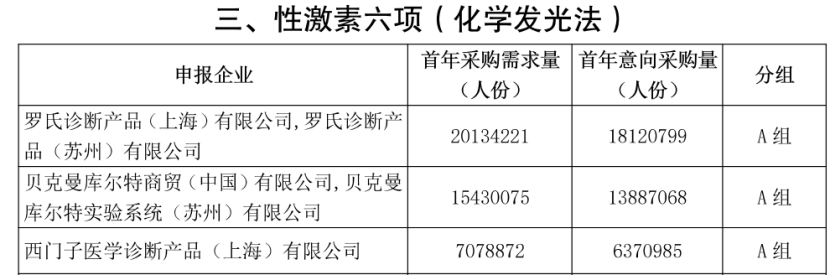 此前,《二十五省(區、兵團)2023 年體外診斷試劑省際聯盟集中帶量采購公告(第3號)》中已經公布了申報企業首年采購需求量、首年意向采購量及分組情況。
