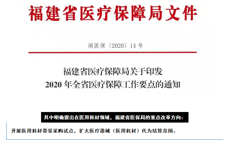 福建省在此之后首個(gè)發(fā)布今年醫(yī)保改革計(jì)劃,把全省擴(kuò)大耗材貨款醫(yī)保統(tǒng)一結(jié)算納入其中,可見預(yù)見,今年落地的省份將不在少數(shù)!