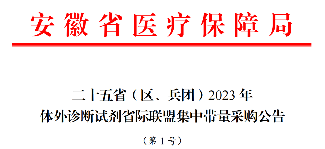 11月17日,安徽省醫(yī)藥集中采購平臺正式發(fā)布《二十五省(區(qū)、兵團)2023年體外診斷試劑省際聯(lián)盟集中帶量采購公告(第1號)》(完整見文末)。