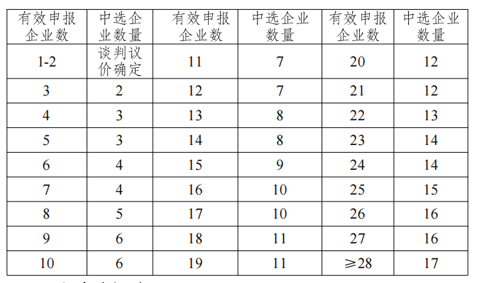 同一競價組內(nèi),根據(jù)企業(yè)報價由低到高進行排名。企業(yè)報價相同時,意向采購量多的企業(yè)優(yōu)先中選。若報價及意向采購量均相同,則采取并列不連續(xù)方式排名,最后一個中選排名有兩個及以上企業(yè)并列時,所有并列排名企業(yè)一并中選。