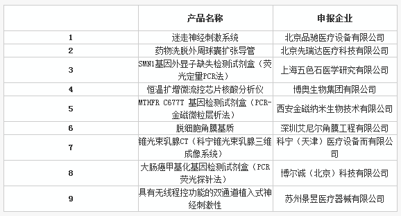 這66項創(chuàng)新醫(yī)療器械中,已經(jīng)有9項獲批上市了。分別為: