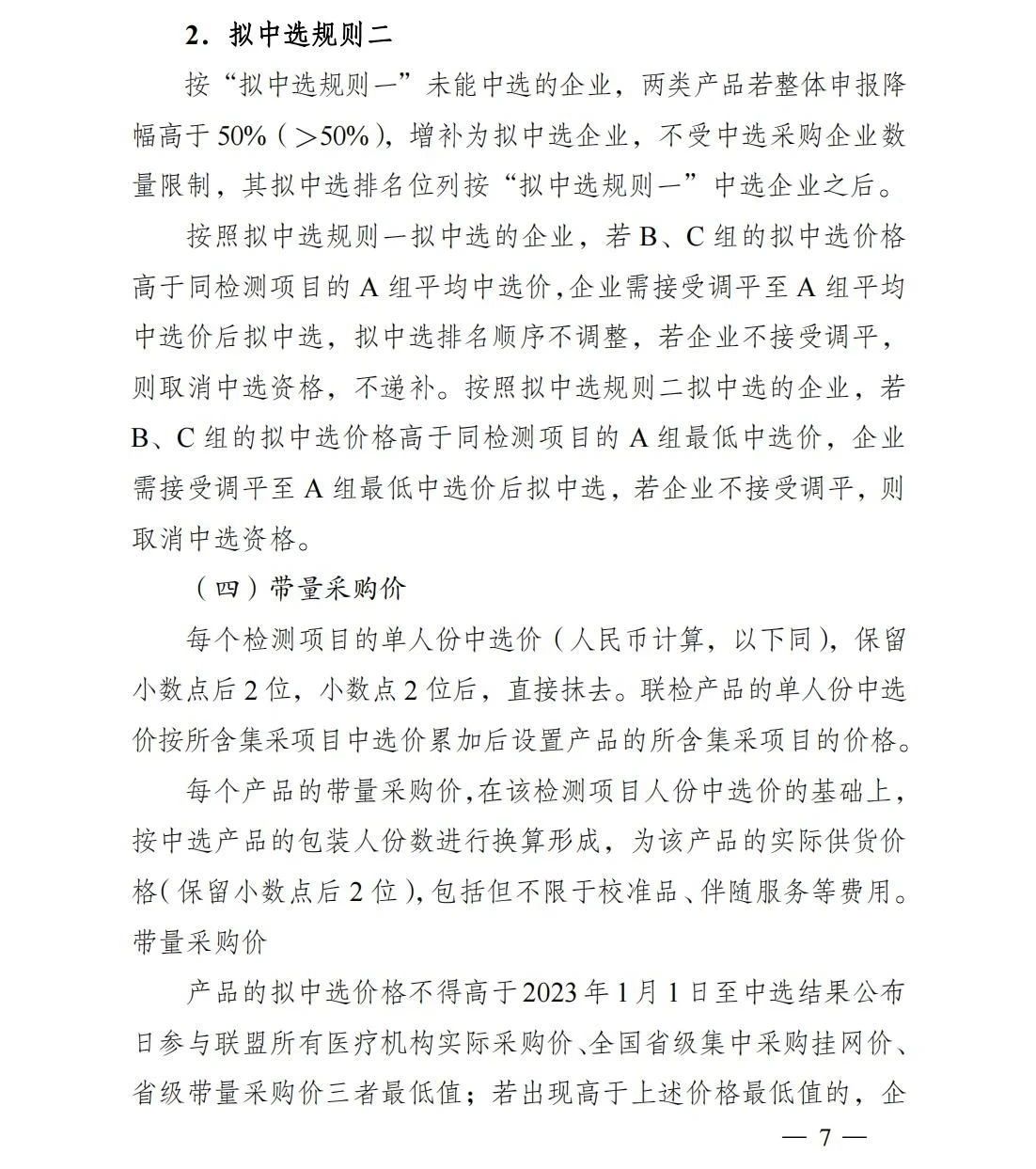按擬中選規則一未能中選的企業,兩類產品若整體申報降幅高于50%增補為擬中選企業,不受中選采購企業數量限制(具體規則見文末)。