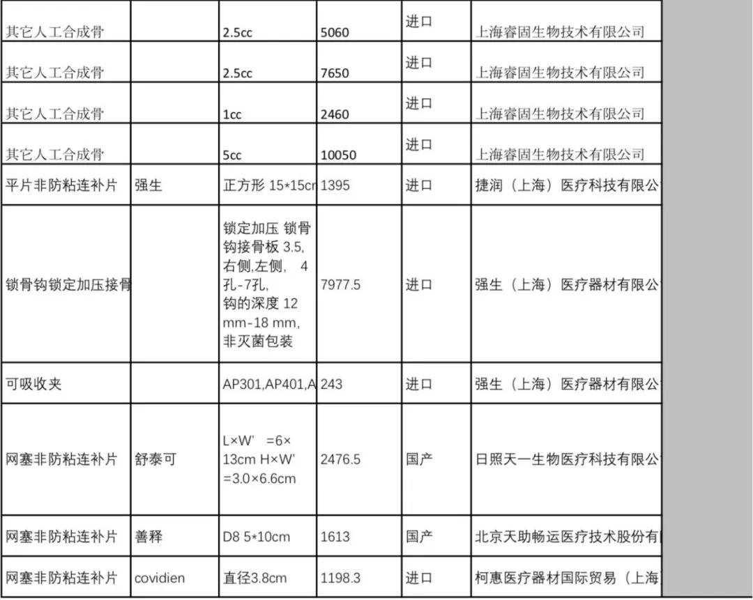 上海睿固生物技術有限公司的5款“其它人工合成骨”產品,報價從2460元至10050元不等,均被處理為未誠信申報價格。