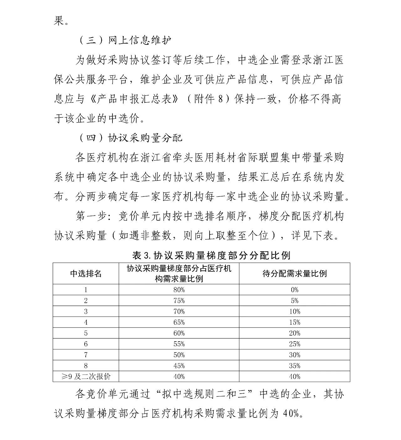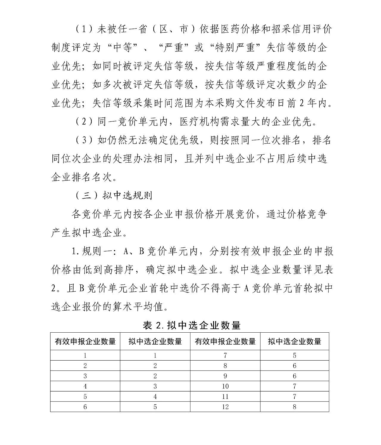 各競價單元通過“擬中選規則二和三”中選的企業,其協議采購量梯度部分占醫療機構采購需求量比例為 40%。
