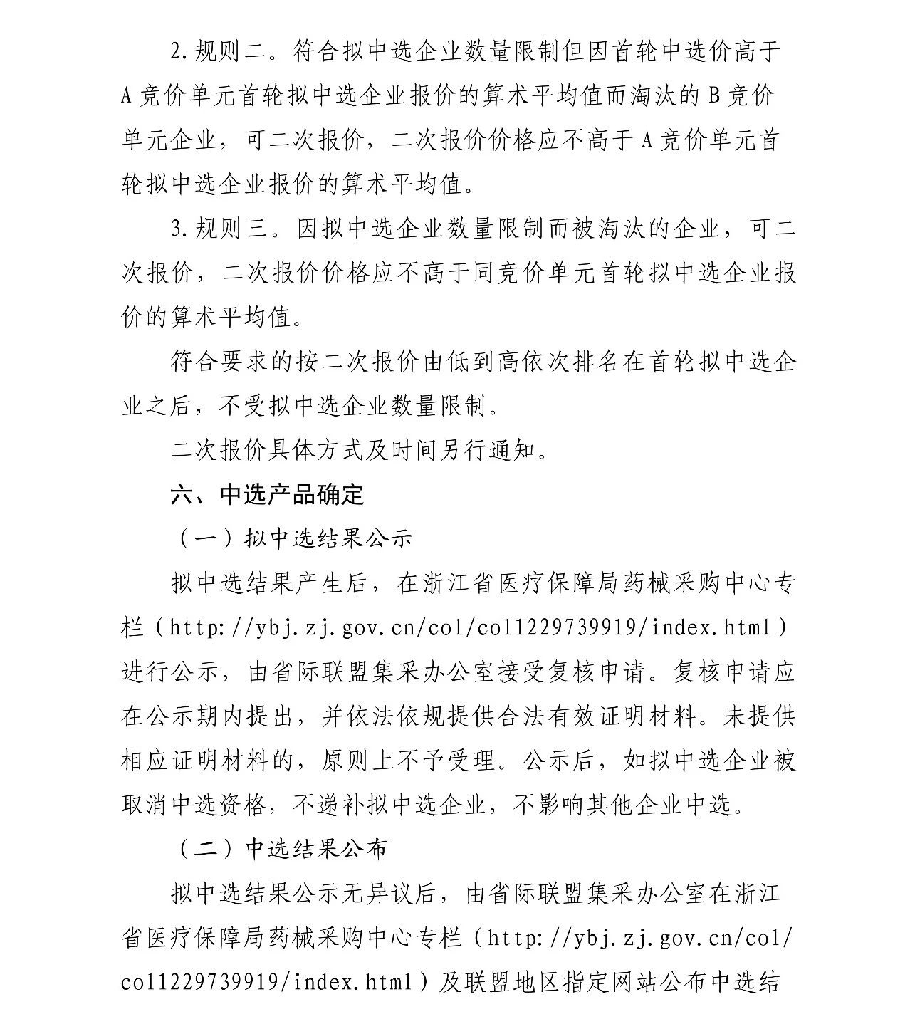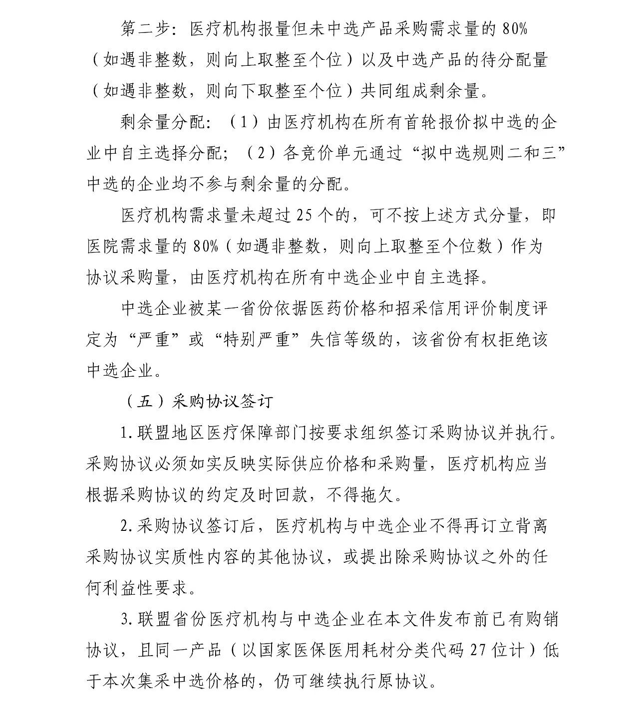 剩余量分配:(1)由醫療機構在所有首輪報價擬中選的企業中自主選擇分配;(2)各競價單元通過“擬中選規則二和三”中選的企業均不參與剩余量的分配。