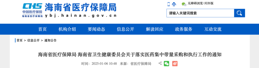 1月6日,海南醫保局發布《海南省醫療保障局 海南省衛生健康委員會關于落實醫藥集中帶量采購和執行工作的通知》(以下簡稱《通知》)。