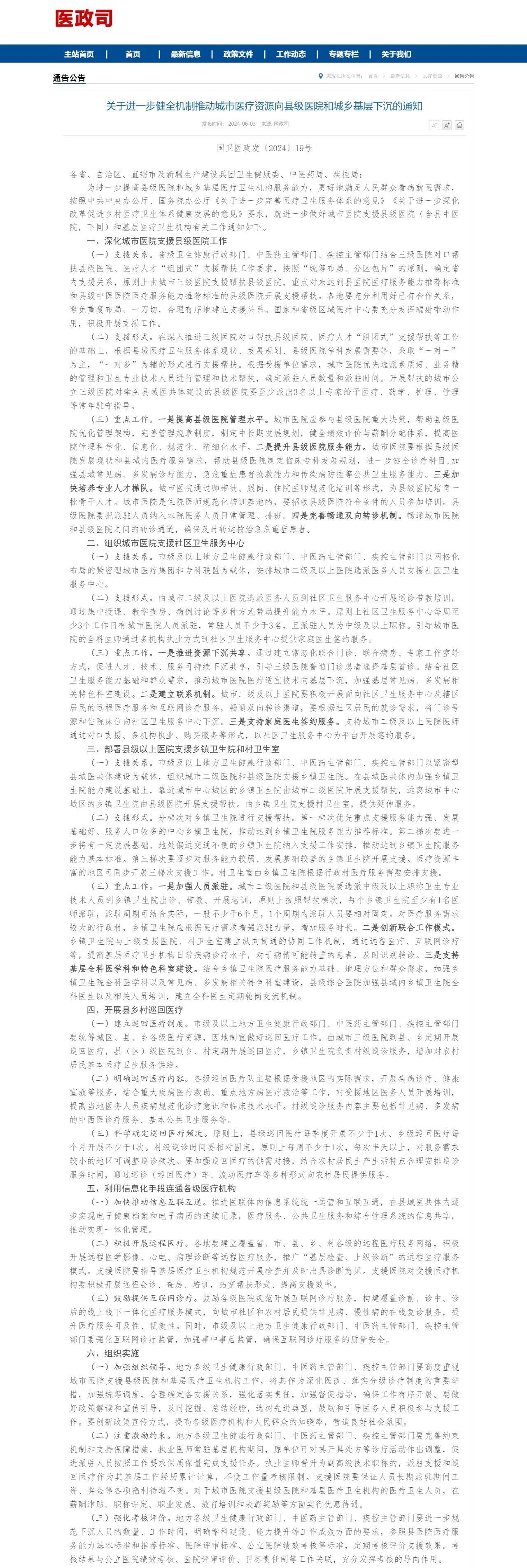 近日,國(guó)家衛(wèi)健委發(fā)布《關(guān)于進(jìn)一步健全機(jī)制推動(dòng)城市醫(yī)療資源向縣級(jí)醫(yī)院和城鄉(xiāng)基層下沉的通知》(完整附文末)。
