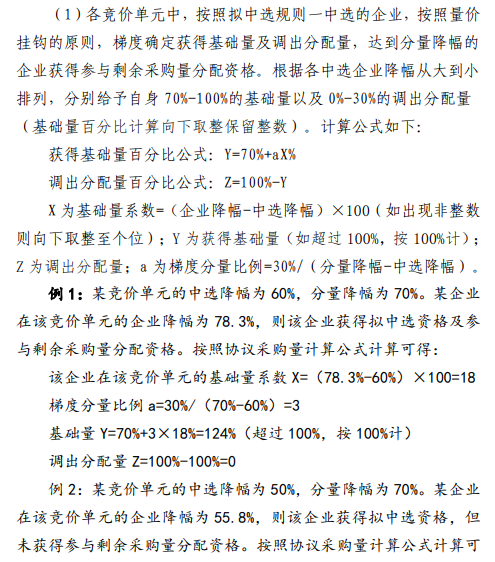 其中指出,企業降幅達到中選降幅的,獲得擬中選資格;企業降幅達分量降幅的,獲得參與剩余采購量分配資格。
