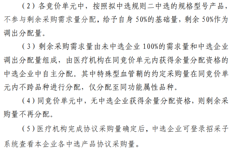 本次集采設(shè)置了兩檔降幅。企業(yè)降幅達(dá)到中選降幅的,獲得擬中選資格;企業(yè)降幅達(dá)分量降幅的,獲得參與剩余采購(gòu)量分配資格。