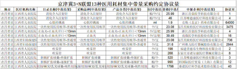 根據上述通知,自2024年8月1日零時起,江西醫療機構執行京津冀“3+N”聯盟13種醫用耗材集中帶量采購及骨科創傷類醫用耗材集中帶量采購中選結果。采購周期為2年,第一年采購周期自2024年8月1日至2025年7月31日。