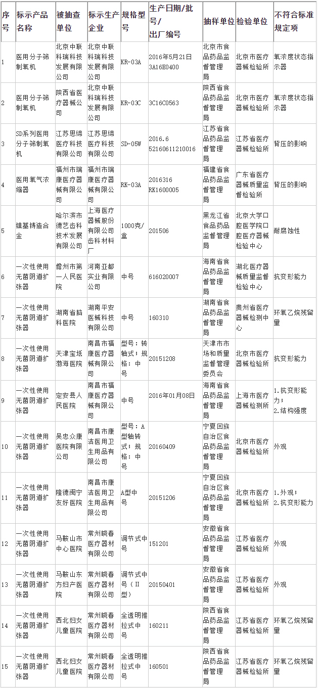 國家食藥監(jiān)總局:15批次醫(yī)療器械產(chǎn)品不合格