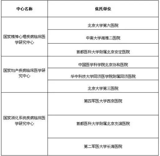 以下為第三批國家臨床醫學研究中心名單