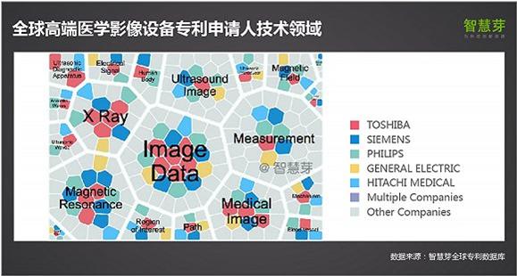 3)高端醫療影像設備的專利量,全球前五名的企業分別為:東芝,通用電氣,西門子,飛利浦和日立公司。