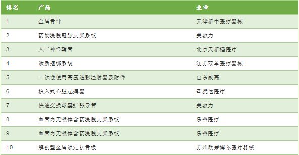 內(nèi)蒙古高值耗材銷售TOP10